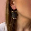 Handmade earrings made of pure brass, featuring striking black oxidation and a polished edge that highlights the contrast.