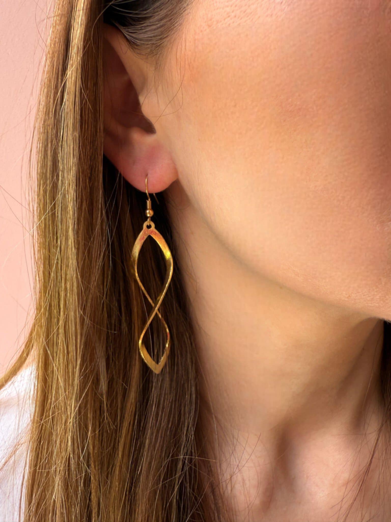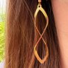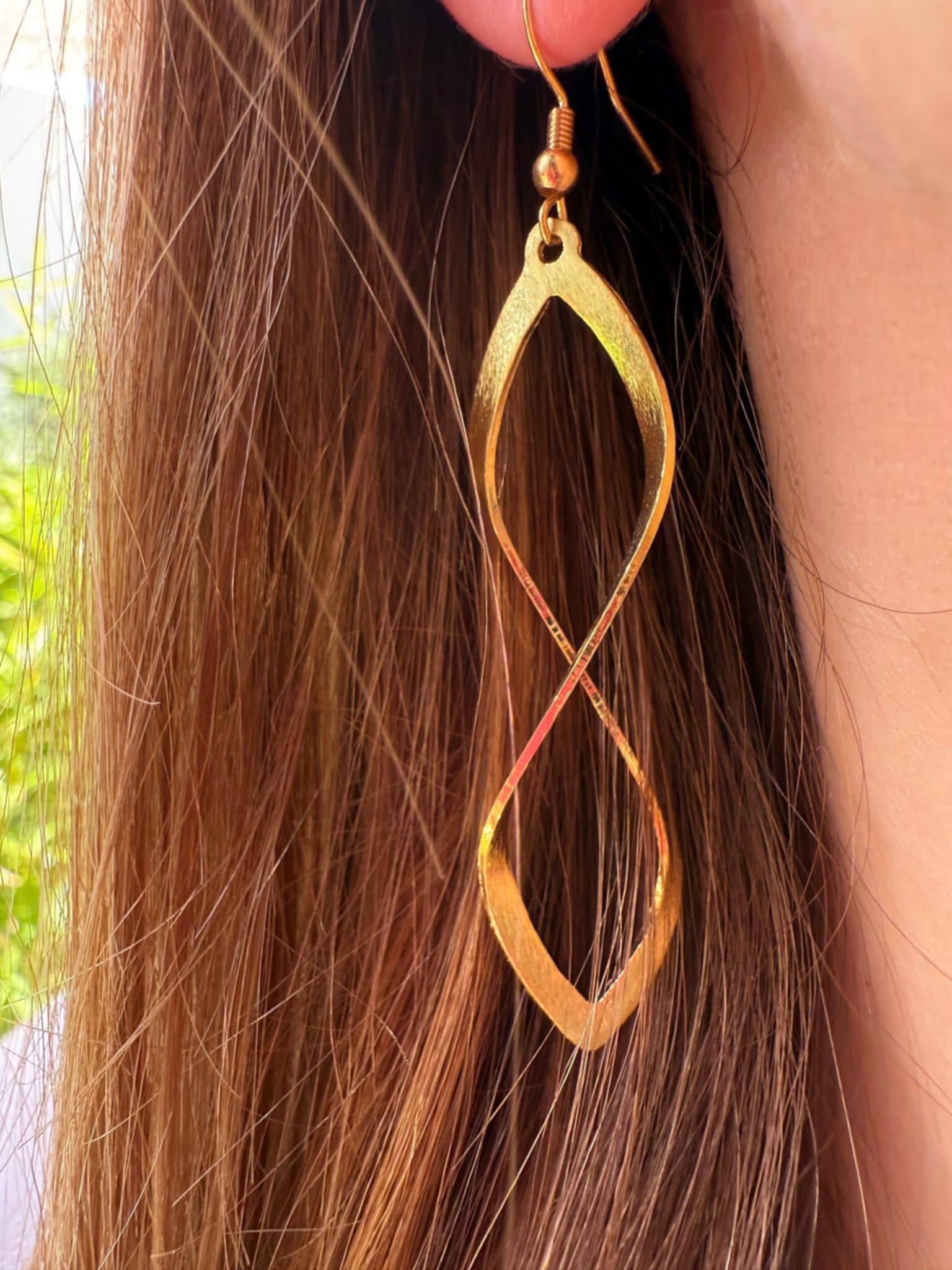 Handmade brass earring with a hook and a height of 6.5 centimeters.